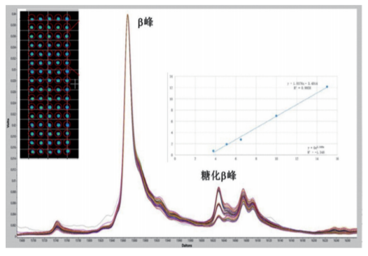 三種不同糖化率樣本,每種樣本24次點樣測試,共72次測試的質(zhì)譜圖疊加,測試精度達98%以上。