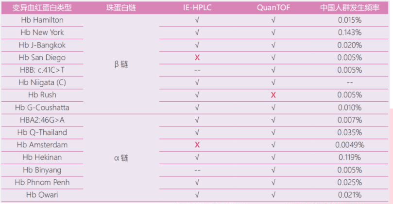 15種異常血紅蛋白的檢測(cè)結(jié)果比對(duì)