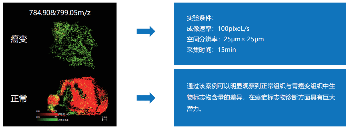 作為個(gè)體化醫(yī)療的關(guān)鍵詞之一,腫瘤標(biāo)志物相關(guān)研究方興未艾。質(zhì)譜成像技術(shù)誕生,為發(fā)現(xiàn)腫瘤標(biāo)志物的組織特異性提供了不可替代的技術(shù)手段。QuanIMAGE系統(tǒng)可以同時(shí)提供高空間分辨率和高成像速度,為準(zhǔn)確捕捉標(biāo)志物提供了重要保障。